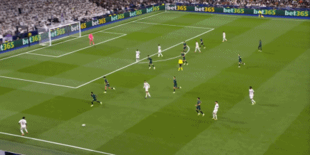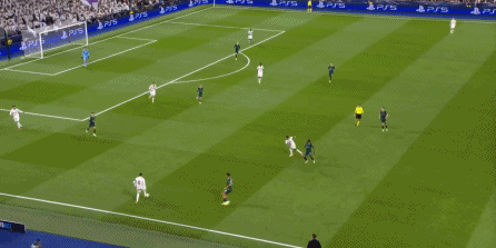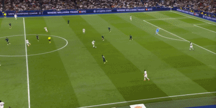 这个时候你就会发现,尼科独木难支,谢尔基也帮不上忙,所以贝林厄姆将球交给罗德里戈,第一球就这么到来了: